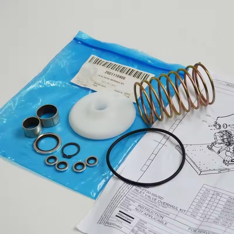 Уласни вентил је основна компонента која контролише количину усиса ваздуха ваздушног компресора. Постиже учитавање (рад у потпуности) и истовар (рад у празном ходу) подешавањем отварања вентила. Функција комплета за одржавање је: